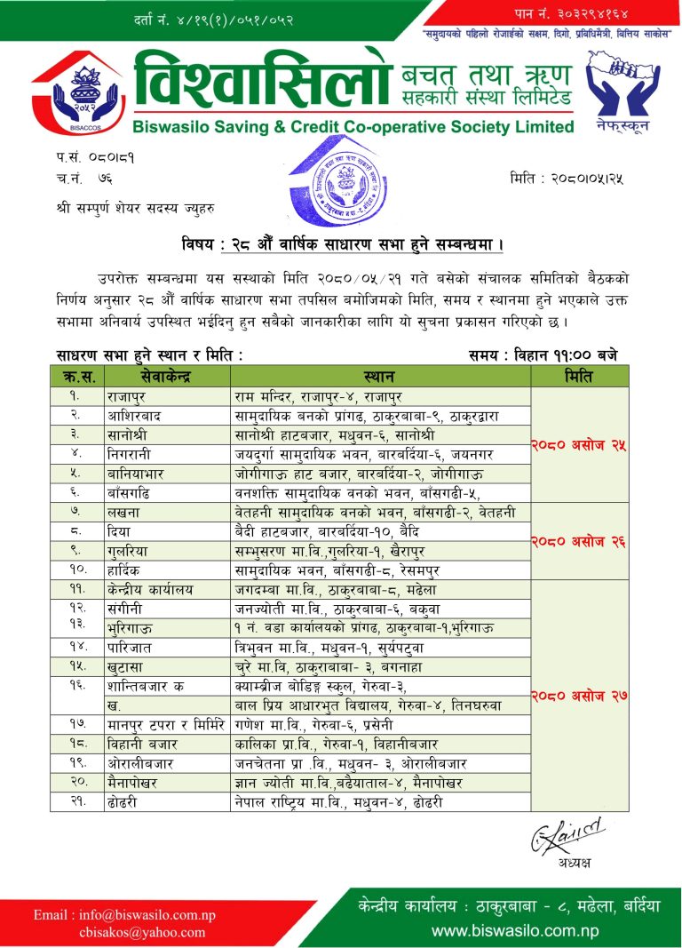 २८ औँ वार्षिक साधारण सभा हुने सम्बन्धी सूचना