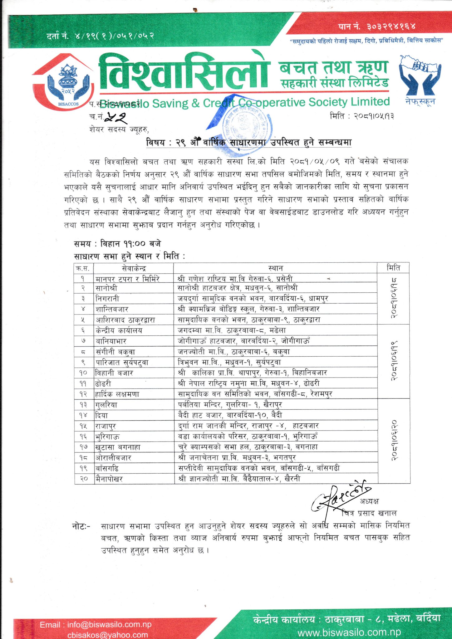 २९ औँ वार्षिक साधारण सभा हुने सम्बन्धी सूचना